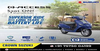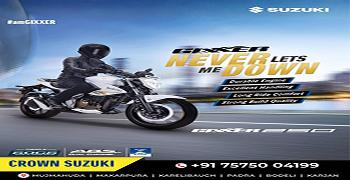 Established in 2013, CROWN SUZUKI, Munjmahuda is one of the most well-known and trusted Suzuki Bike Showroom in Vadodara (O P Road). CROWN SUZUKI is an authorised Suzuki Motorcycle Dealer with a state-of-the-art showroom where you can check out the new Avenis,take it out for a test ride, and book your dream ride. On our website, you can explore the entire range of two-wheelers by Suzuki Motorcycles. You can also find out the ex-showroom price of different variants, calculate EMI, get a callback, and even book a suitable time slot for a test ride. Check out your favourite Suzuki motorcycles and scooters conveniently, with the easy-to-use filters to simplify your search. CROWN SUZUKI offers the entire range of Suzuki Motorcycles, Big Bikes, and Scooters in the Avenis from CROWN SUZUKI,check out its features, take it for a ride, get a quote, and book your favourite bike from the entire range of Suzuki motorcycles and scooters in. At CROWN SUZUKI, you can also avail two-wheeler finance to buy your favourite ride.
